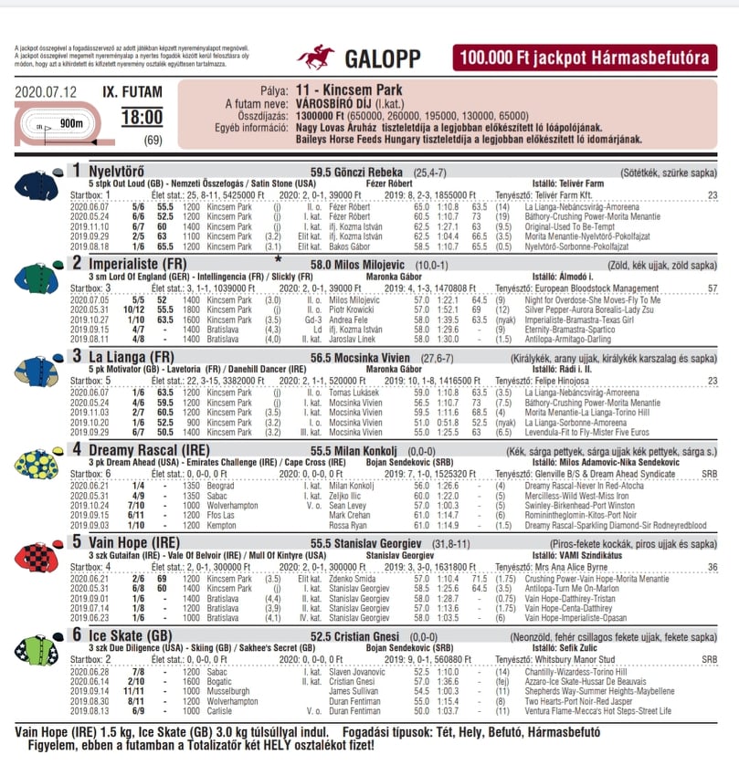 Ove nedelje na Kincsem Parku naš trener Bojan Šendeković je na crtu mađarima doveo dva grla: WASLAWI i DREAMY RASCAL. Bio je planiran Ice Skate, ali nije startovao. Prvo u 16:30 trčao na sintetici "Gazduram H." Waslawi Gnesi C, a potom u 18:00 "Varosbiro Dij" (K-I) Dreamy Rascal Konkolj M. Uprkos zabeleženom rezultatu, puna podrška vlasnicima i trenerima koji u ovim jako nepovoljnim vremenima za naš galop pokušavaju da idu napred.
