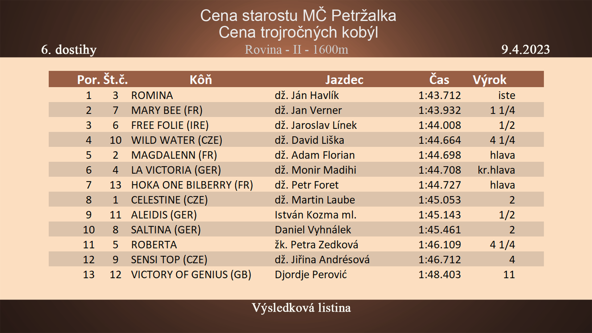 - "30. Cena Arvy" K-I 3g-ž. 1800m €10,000