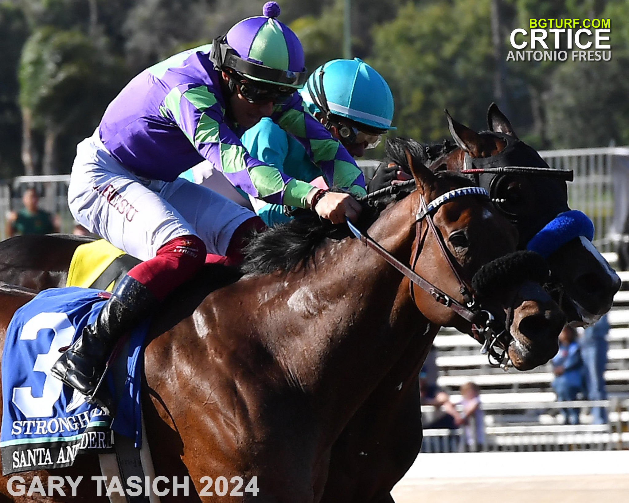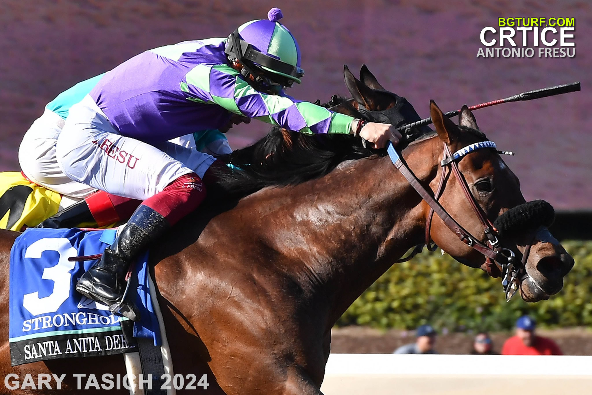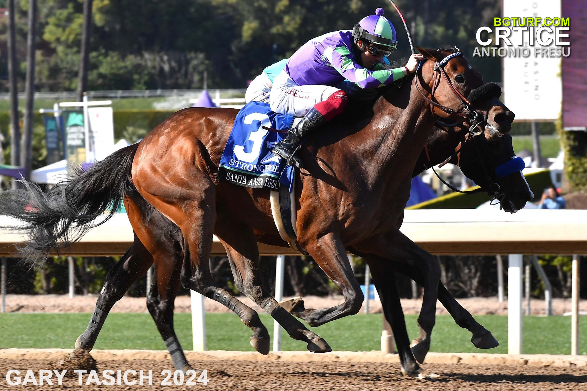 U subotu 06.04 istrčan je Santa Anita Derby, glavna pripremna trka Zapadne obale SAD za Kentucky Derby. Favorit je bilo grlo Imagination (1-1) u čijem sedlu je bio neverovatno uspešan i popularan džokej Lanfranco Dettori. U oštroj borbi ipak, prevagu i pobedu u cilju odneo je Stronghold. Jahač je bio drugi, dosta mlađi Italijan. Njegovo ime je Antonio Fresu. Zvuči poznato?