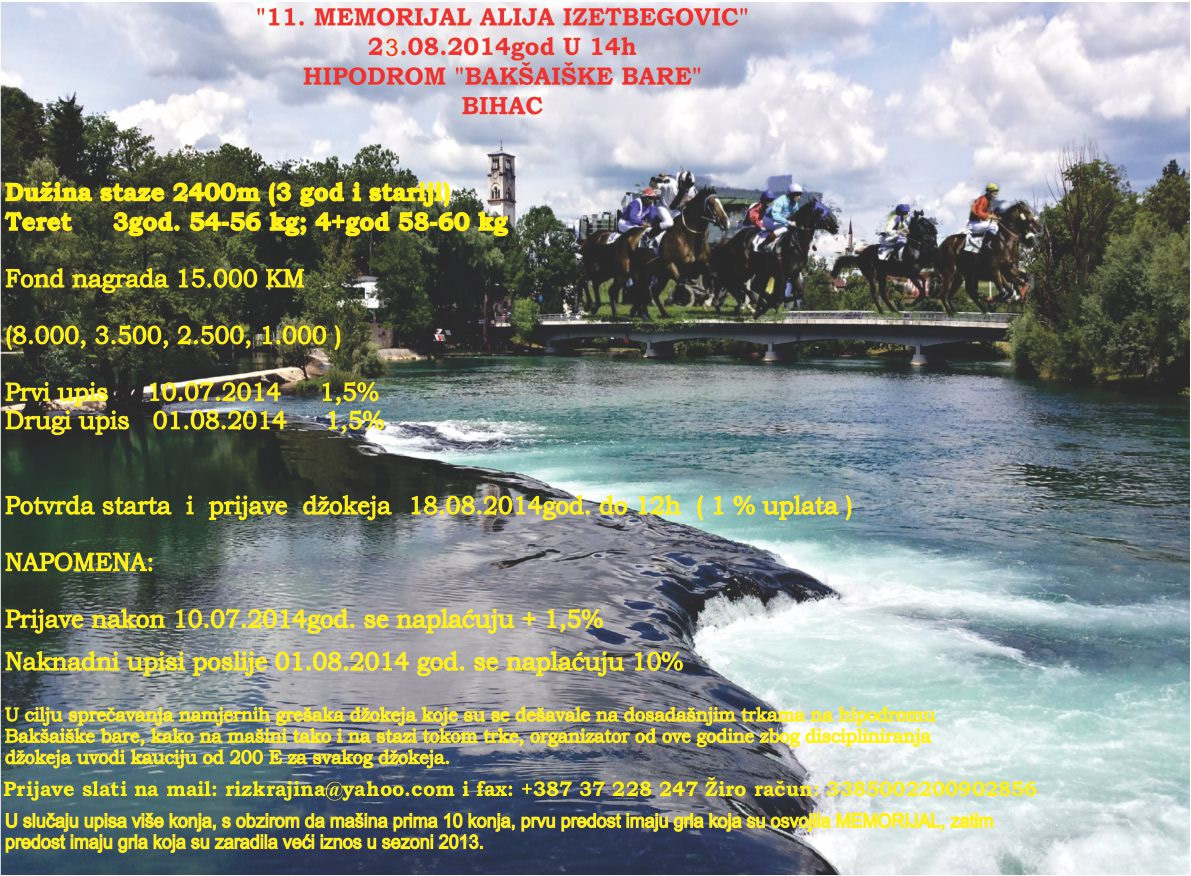 Teret: muška grla 60 kg ženska grla 58 kg konji sa 3 godine imaju popust od 1 kg; konji stariji od 3 godine sa pobjedom u 2014 nose 1 kg više; kastrati nose 59 kg. Nagradni fond: 1. 2,500KM, 2. 1,500KM, 3. 800,00KM