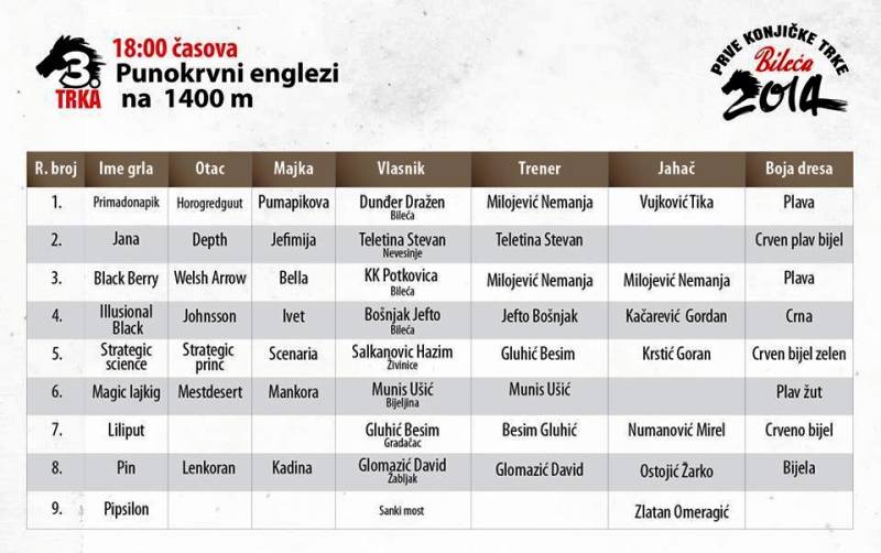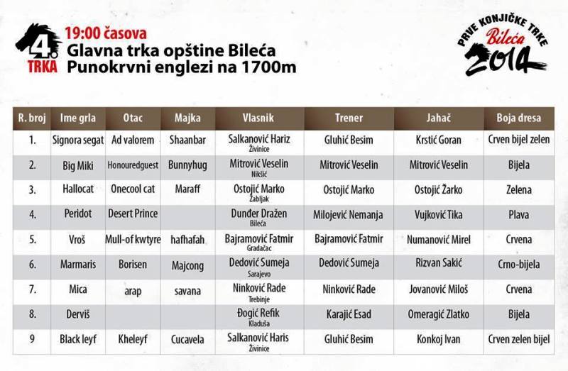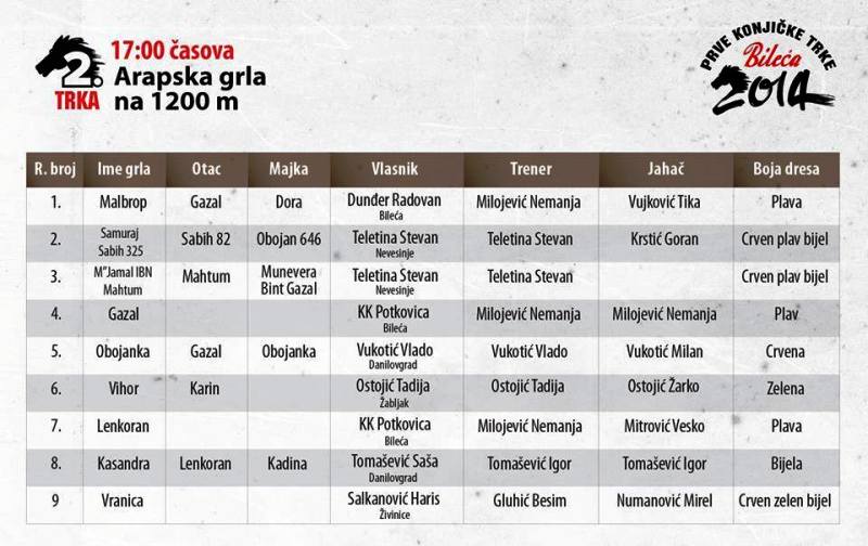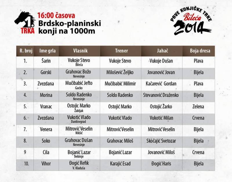 Obavezan sastanak sa vlasnicima grla i jahačima 16,30 časova i tada će se izvršiti podjela startnih brojeva – hašea